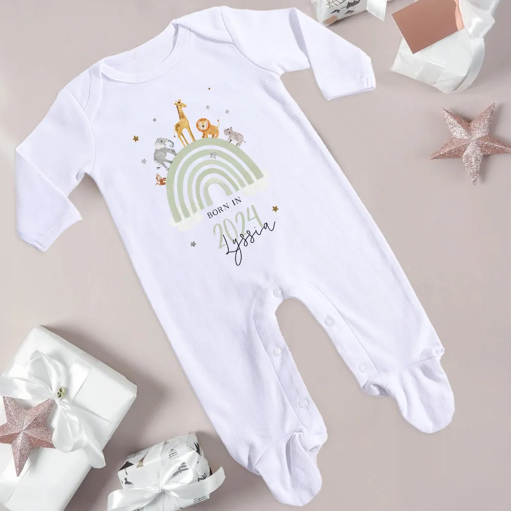 Personalised Baby Sleepsuit New Baby Gift Born In 2024 with Name